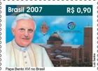 SAO PAULO, 09 May. 07 / 09:36 am (ACI).- Correios, la empresa del estado encargada de los servicios postales, lanzará un sello conmemorativo de la visita del Papa a Brasil el día 10 de mayo, en el Palacio Bandeirantes, cuando el Presidente Luiz Inácio Lula da Silva se encuentre con Benedicto XVI.Este sello conmemorativo tendrá un valor de 0,90 reales (aproximadamente 50 centavos de dólar) y tendrá un tiraje de 2 millones 40 mil unidades. El arte del mismo ha sido realizado por el pintor y diseñador Luiz Santos.