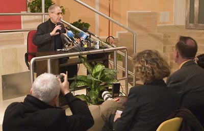 Sobre el futuro puedo decir muy poco. La razón es simple, yo acabo de comenzar. Cuando en la Sala de la Congregación hablan del P. General yo siempre pienso que se refieren al P. Kolvenbach; todavía no he caído en la cuenta de que soy yo. Mi actitud actual es la de escuchar, escuchar y obedecer. Como saben, la Congregación General está sobre el P. General. Durante la Congregación General yo estoy sujeto a la CG. Si la CG me dice qué es lo que hay que hacer, qué dirección tomar en el futuro, yo debo obedecer; esta es mi misión. Por eso lo que ahora me importa es saber qué es lo que quiere la CG y como responder a los desafíos que el Santo Padre nos ha enviado y lo estamos tomando en serio en nuestra reflexión, para dar una respuesta que pueda ayudar a la Iglesia, no a nosotros mismos. Espero encontrarme con el Santo Padre pronto, cuando me llame, para tener un primer encuentro y después de todo esto, cuando los padres de la Congregación se vayan, deberé comenzar a trabajar, y ver cómo responder y hacer realidad todo esto.