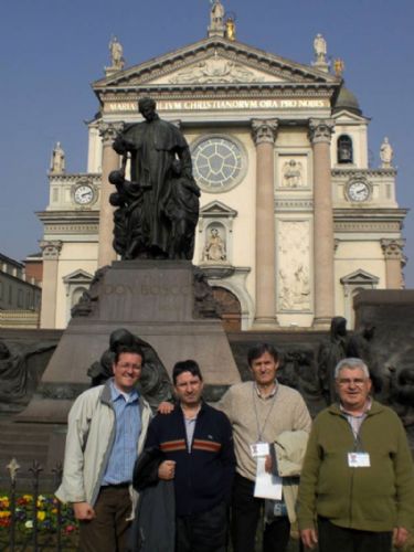 Los salesianos que participan en el Capítulo General 26 (CG26) por parte española, fueron llegando los días previos al 23 a Turín, lugar donde arrancará el CG26. Los 4 de Madrid se reunieron con los representantes de Barcelona y continuaron el viaje juntos, haciendo escala en Niza, hasta llegar a Turín.Precisamente en el momento en que ellos llegaban a Valdocco, lo hacía el Rector Mayor, quien los saludó afectuosamente.