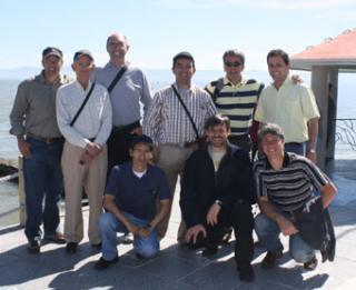 Adjunto una foto de quienes estamos acá. La sacamos un día que fuimos al lago de Chapala para descansar y tomar un poco de aire. Ahí estamos, comenzando por la fila superior, Javier Rojas (ARU), Francisco López (MEX, Instructor), Vincenzo Toscano (Italia), Edgar Rodríguez (VEN), Sérgio Santos (BNE), Sergio Camacho (BOL); en la fila inferior, Saturnino Orosco (PER), Juan Cristóbal Beytía (CHL) y Vanildo Pereira (BNE, Amazonia).