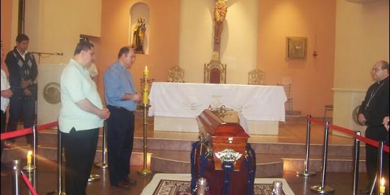 El féretro fue depositado con una protección de cordeles, en tanto que los bancos de la iglesia se desplegaron en forma de hemiciclo para dar cabida a amigos, devotos católicos, referentes sociales, funcionarios y vecinos que comenzaron a desfilar esta mañana para la despedida.