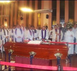 Ayer, alrededor de las 18, dio inicio la misa de cuerpo presente en la Iglesia Catedral Virgen del Carmen y sus restos fueron sepultados dentro del templo, frente al altar mayor, cumpliendo con el propio pedido del religioso. Además de todos los sacerdotes de la diócesis, concelebró el rito el obispo de Oberá, Damián Bittar.
