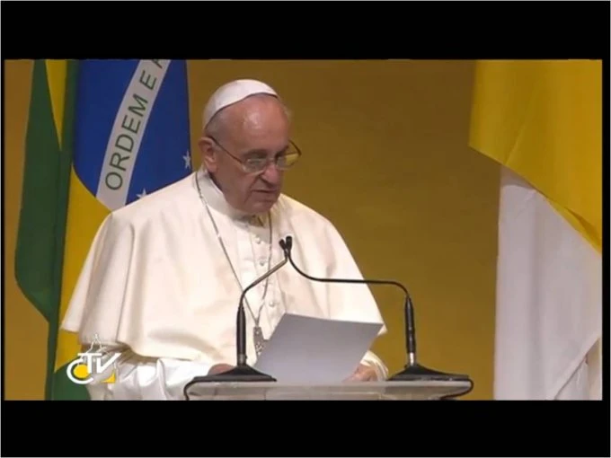 Como es sabido, el principal motivo de mi presencia en Brasil va más allá de sus fronteras. En efecto, he venido para la Jornada Mundial de la Juventud. Para encontrarme con jóvenes venidos de todas las partes del mundo, atraídos por los brazos abiertos de Cristo Redentor.