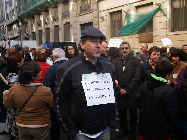 En definitiva, varios centenares de personas de Iglesia, sin apenas influencia, ni recursos, ni mucho menos acceso a los centros de poder y comunicación social, dispuestas a proferir un sonoro silencio de protesta dirigido a los oídos más insensibles y corazones endurecidos, pero también a acariciar suavemente la dignidad tantas veces herida de los que más sufren. Durante cerca de dos horas, los asistentes marcharon alrededor de una cruz dibujada en el suelo y formada con carteles donde se podían leer algunos de las presentes afrentas más destacadas a los derechos sociales, como la degradación de las condiciones laborales, los recortes en la asistencia sanitaria, el sistema público y la protección social. La escena recordaba imágenes grabadas en Norteamérica, en la que ciudadanos y ciudadanas pasean en círculo con sus pancartas en la mano.
