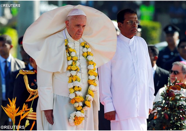 Como máximo líder de esa Iglesia-hospital-de-campaña, el Papa ofrecerá reconciliación en Sri Lanka, donde todavía se oyen los ecos de la larguísima guerra civil, que duró de 1983 a 2009, entre la mayoría cingalesa y la minoría tamil y que dejó más de 100.000 muertos. Además es uno de los países arrasados por el tsunami de 2004, que causó casi 31.000 muertos. En un país de 20 millones de habitantes, donde los católicos son "un pequeño rebaño" de millón y medio de fieles (el 7% de la población) entre la mayoría budista (70, 2%), seguida por los hinduistas (12,6%) y los musulmanes (9,7%). La minoría católica está bien vista en el país, tanto entre la mayoría cingalesa como entre la minoría tamil, con raíces en ambos pueblos desde el siglo XVI, pero con poco crecimiento.